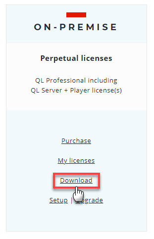 You can download a copy of the QL Server installer software from the On-Premise menu.