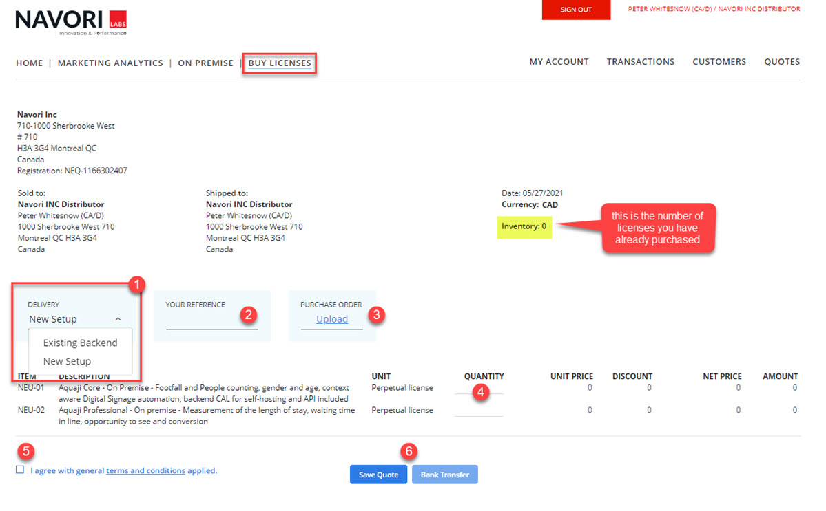 NOTE: The Inventory field shows how many licenses you have purchased. This data is updated in real-time.