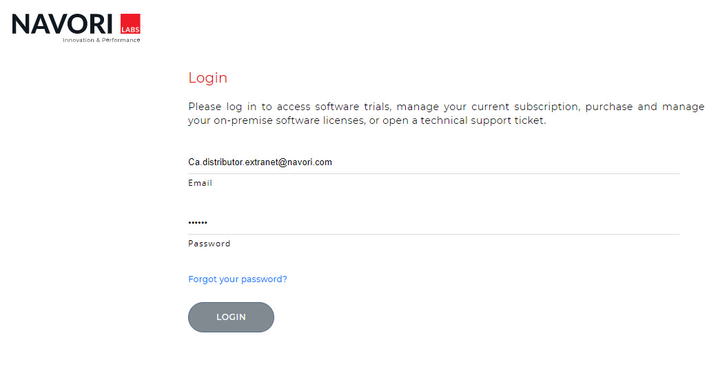 First, visit https://extranet.navori.com/ and enter your login name and password.