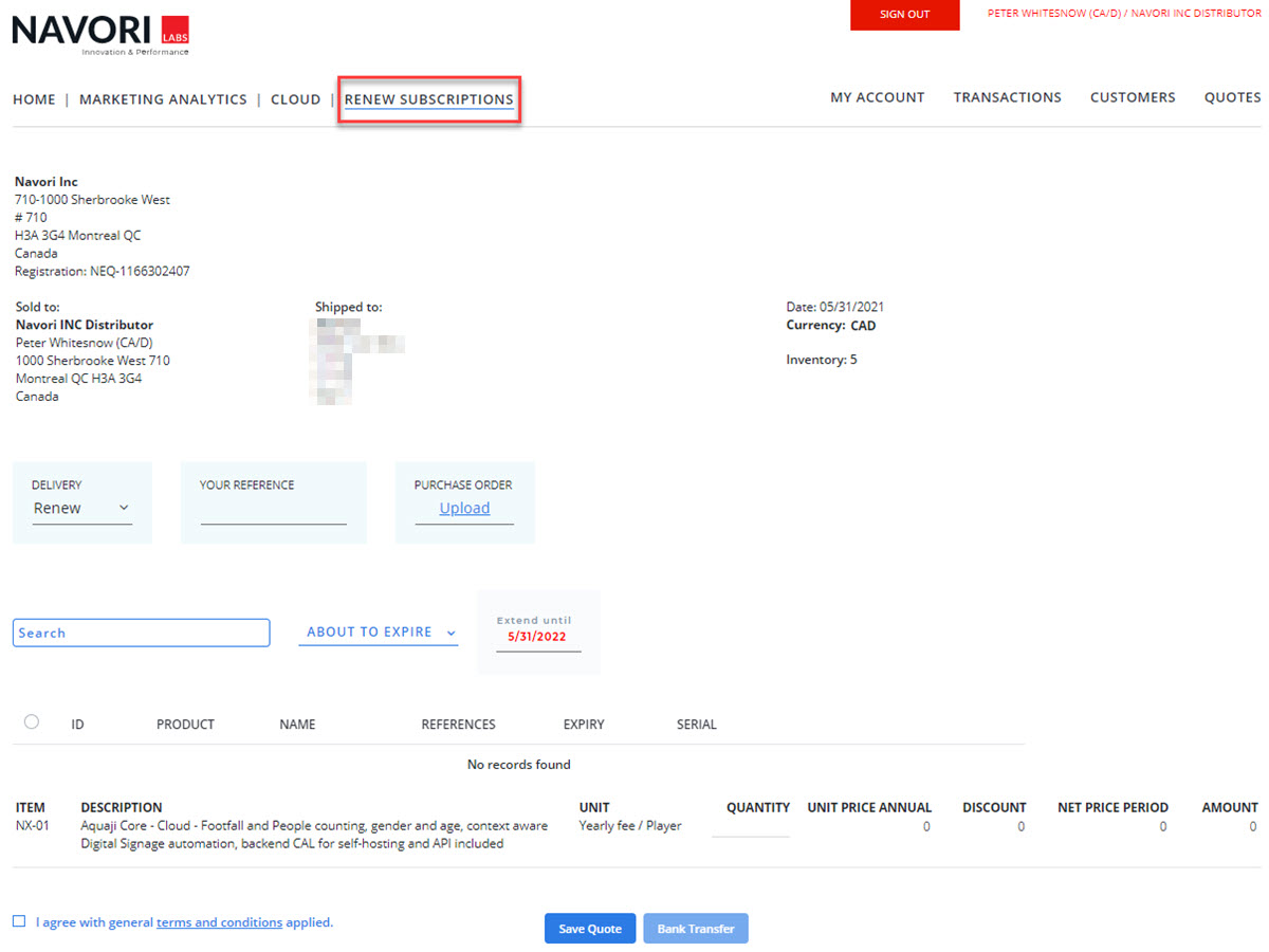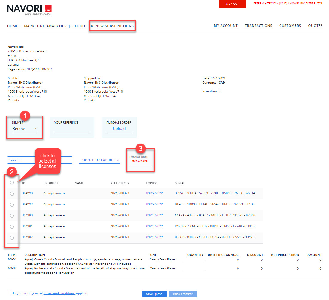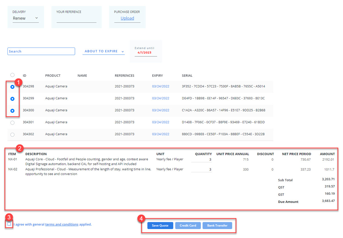 In the example below, we are renewing 3 Aquaji Cloud licenses: