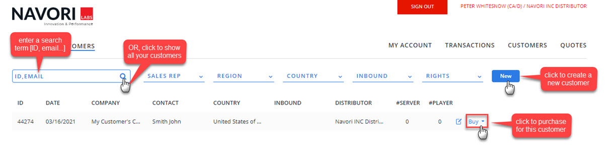 - From the CUSTOMER page, you can create a new customer or use the search engine to find an existing customer. To load all your customers, simply click the search icon.
