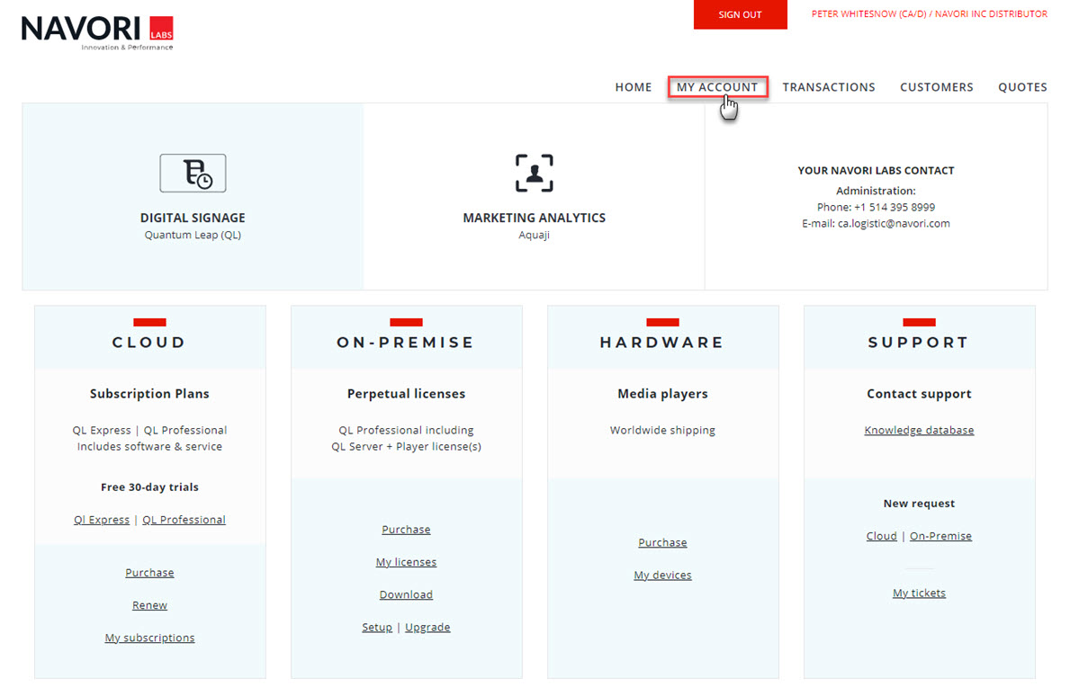 - This field will show the Navori office that is in charge of your account (Navori Inc - North America, Navori SA - Europe, etc...)