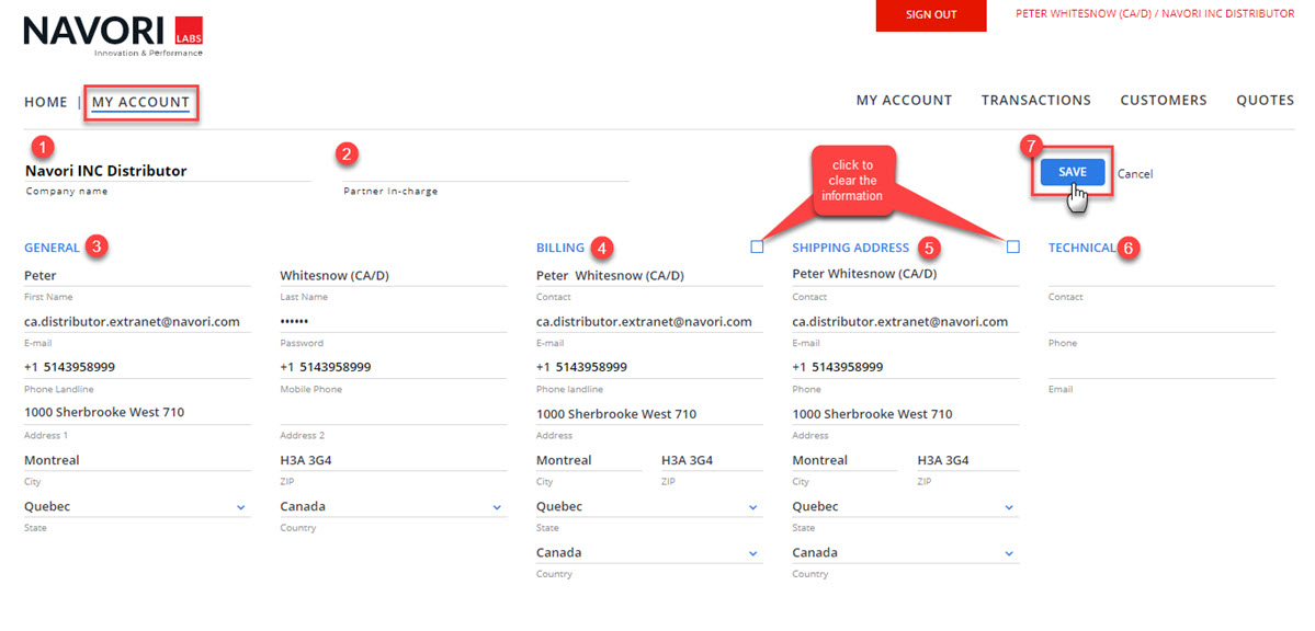 NOTE: Clicking the checkbox on the right of BILLING and SHIPPING ADDRESS will clear all the fields so you can enter new information.
